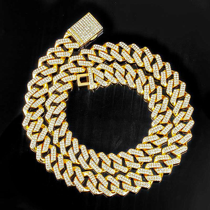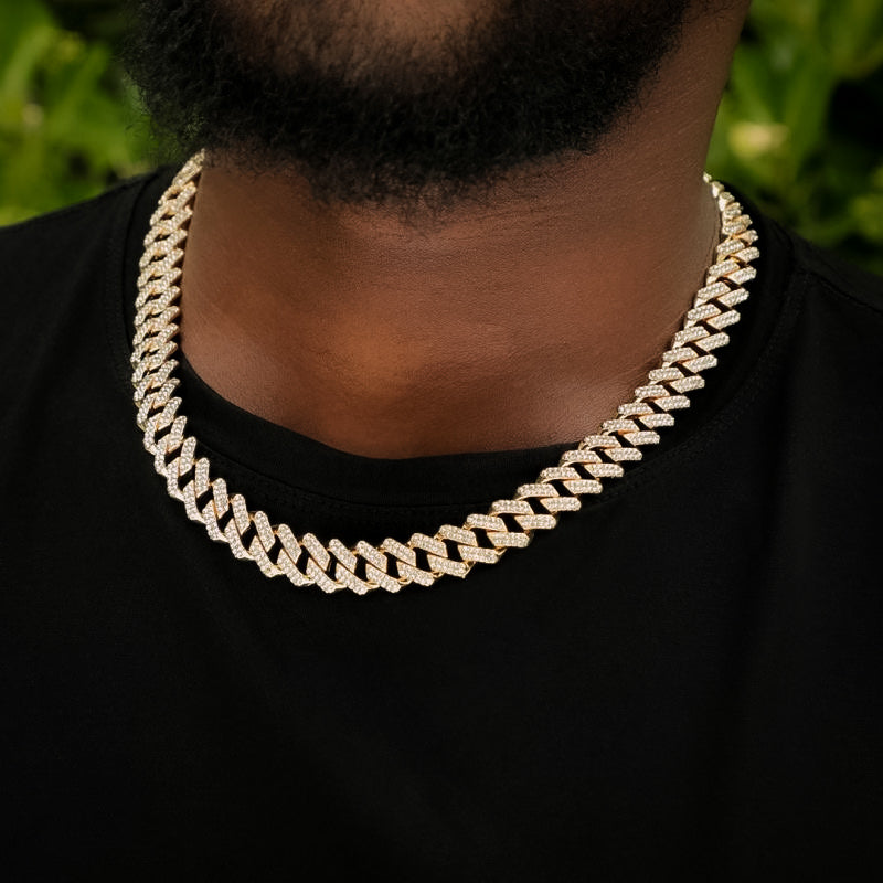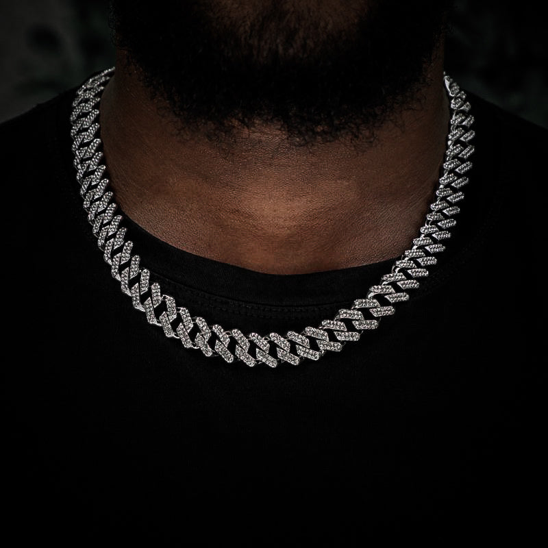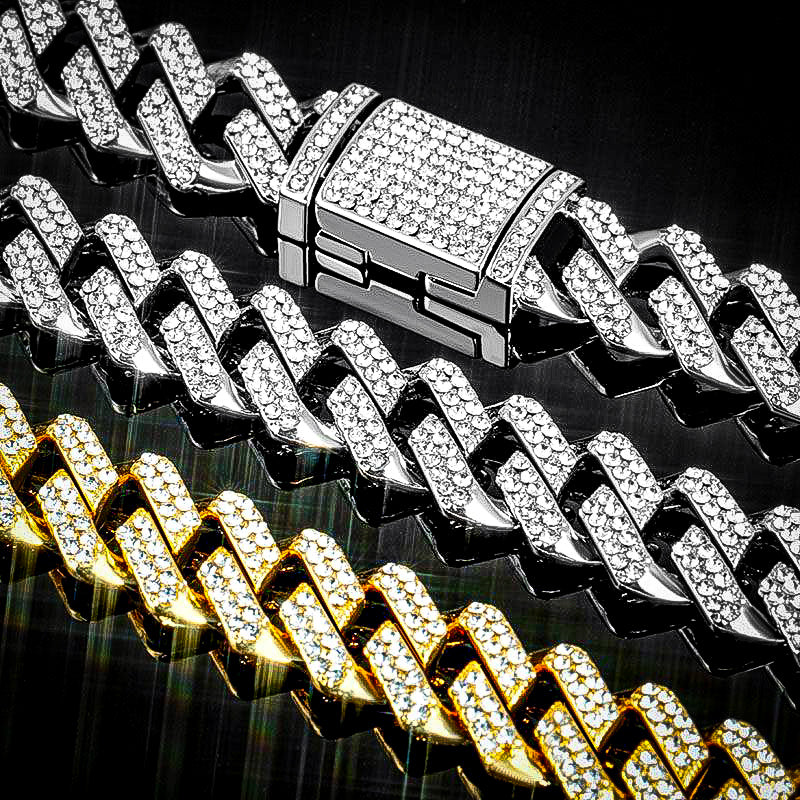 Você quer estar na moda com Correntes de qualidade sem pagar caro? Esta corrente prong de 13 mm de largura, com 2 fileiras de cravejado é a opção ideal para você.